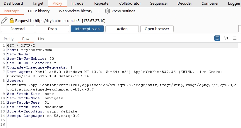 - Intercepting Requests: When requests are made through the Burp Proxy, they are intercepted and held back from reaching the target server. The requests appear in the Proxy tab, allowing for further actions such as forwarding, dropping, editing, or sending them to other Burp modules. To disable the intercept and allow requests to pass through the proxy without interruption, click the - Intercept is onbutton.