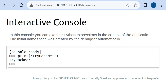 One example of such a vulnerability was allegedly used when Patreon got hacked in 2015. Five days before Patreon was hacked, a security researcher reported to Patreon that he had found an open debug interface for a Werkzeug console. Werkzeug is a vital component in Python-based web applications as it provides an interface for web servers to execute the Python code. Werkzeug includes a debug console that can be accessed either via URL on /console, or it will also be presented to the user if an exception is raised by the application. In both cases, the console provides a Python console that will run any code you send to it. For an attacker, this means he can execute commands arbitrarily.