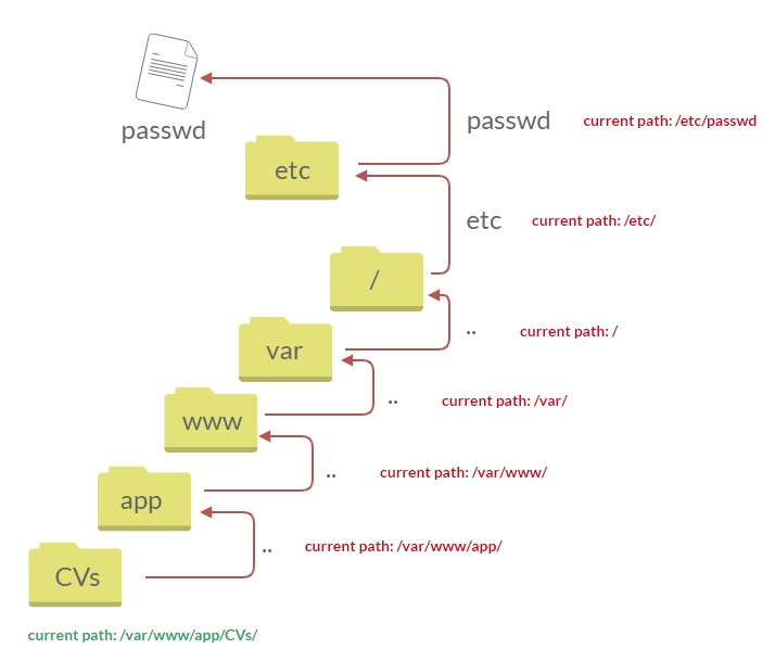 Suppose there isn't input validation, and instead of accessing the PDF files at /var/www/app/CVs location, the web application retrieves files from other directories, which in this case /etc/passwd. Each .. entry moves one directory until it reaches the root directory /. Then it changes the directory to /etc, and from there, it read the passwd file.